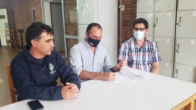 Se firmó este viernes el convenio entre la Intendencia de Salto y la Comisión Técnica Mixta (CTM) de Salto Grande para la instalación y funcionamiento de la cocina del Comedor Municipal en el Hogar Universitario. Este acuerdo establece un aporte de CTM Salto Grande de dos millones de pesos para la adquisición de maquinaria, utensilios e insumos, así como un aporte de seiscientos mil pesos para su funcionamiento. Acompañaron la firma, el secretario general de la Intendencia de Salto, Gustavo Chiriff y el director de Desarrollo Social, Regino López.
