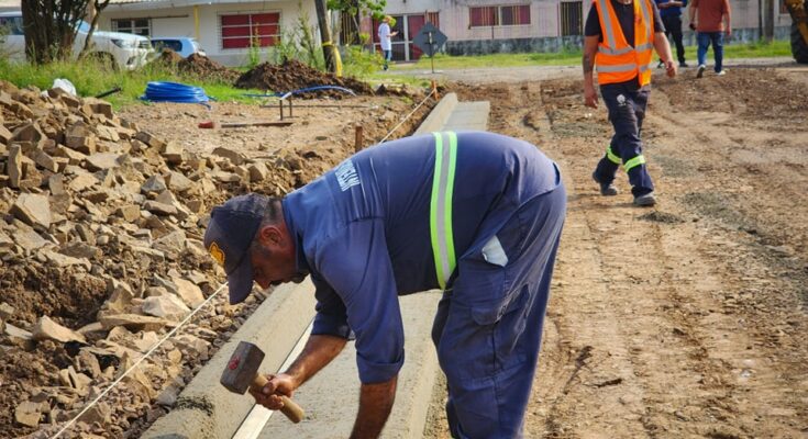 En esta amplia y densamente poblada zona de nuestra ciudad, que sigue creciendo y demandando obras que acompañen ese crecimiento, hoy observamos avances en calles y veredas, con la colocación de materiales, indicó.