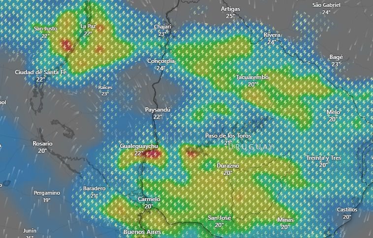 El Instituto Uruguayo de Meteorología (Inumet) emitió un aviso especial en el que advierte por tormentas fuertes y puntualmente muy fuertes. De acuerdo con el comunicado, para la noche del sábado y la madrugada del domingo “una masa de aire húmeda e inestable” afectará al país.