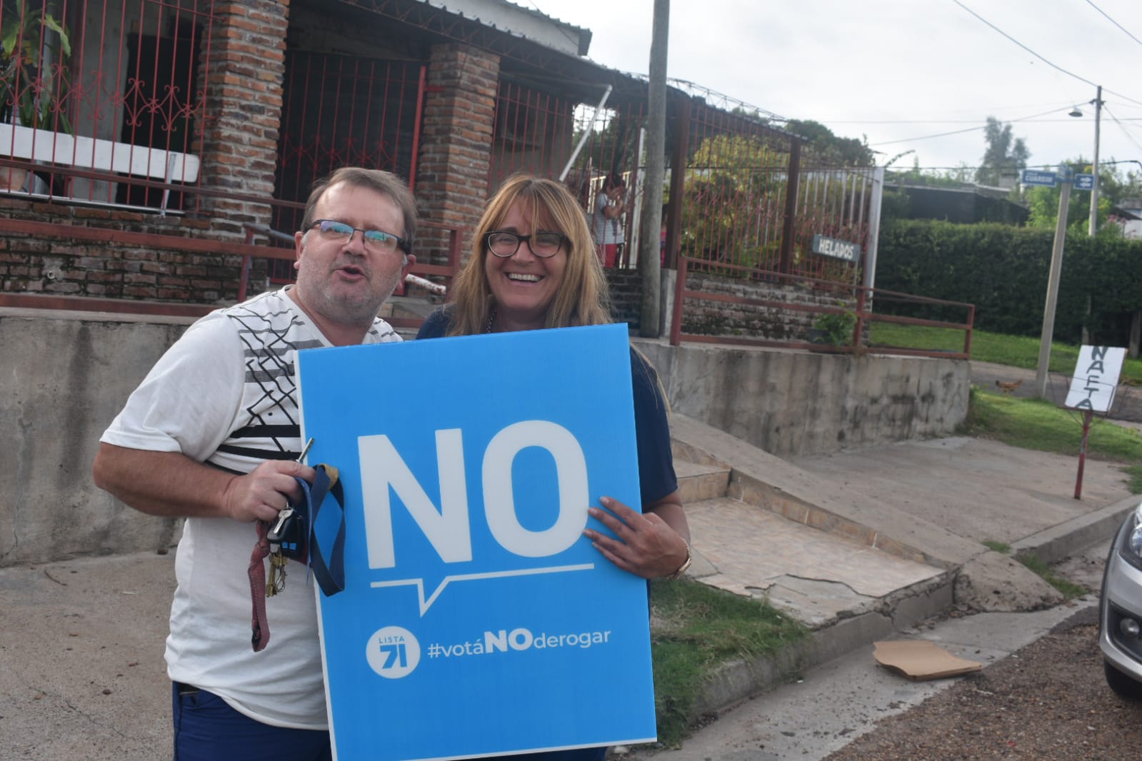 «Tuvimos una muy buena movida en distintos barrios de Salto, como Saladero y Cien Manzanas, y vamos a recorrer toda la ciudad para informarle a la población porqué los uruguayos tenemos que defender la LUC votando el NO con la papeleta de color celeste», explicó Almirón.