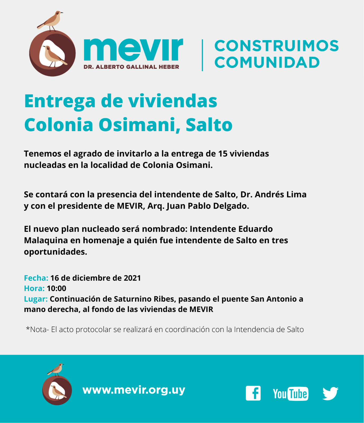 MEVIR realiza acto de inauguración de Viviendas en Colonia Osimani 11 diciembre, 202110 diciembre, 2021 - Dejar un comentario