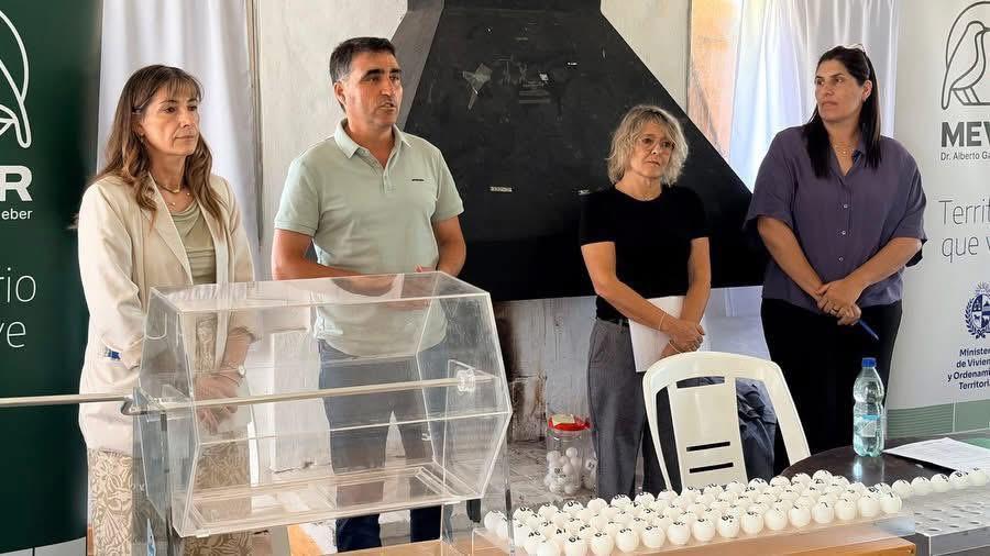 En ese marco, y con la participación del equipo técnico de MEVIR, se llevó a cabo el sorteo entre las familias inscriptas como aspirantes al Plan Nucleado, instancia clave del proceso. En total, se sortearon 45 lugares entre más de 110 familias inscriptas, que pasarán a integrar este nuevo emprendimiento habitacional en la localidad.