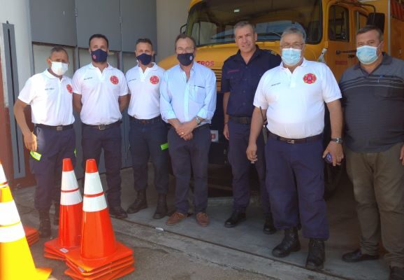En su reciente visita a Salto, el ministro de Transporte y Obras Públicas, José Luis Falero, realizó una donación de 15 conos de señalización a la Unidad 243 de Bomberos Voluntarios de Salto.