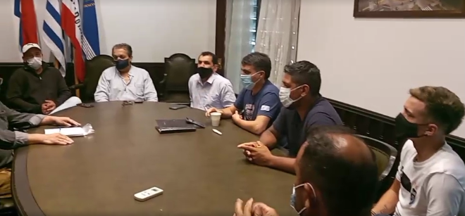 El intendente Andrés Lima y el secretario general Gustavo Chiriff, recibieron a directivos de Adeoms y al director de Servicios Públicos, Mario Furtado, para tratar de mediar en la situación generada.
