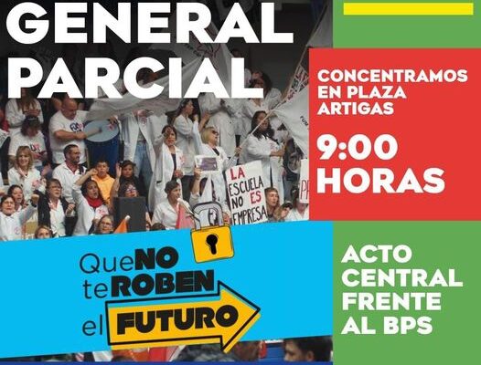 PIT-CNT Salto convoca para este martes a un paro general parcial y acto frente al BPS 12 noviembre, 2022 - Dejar un comentario 15/11 • Paro Parcial • 9 a 13 h QUE NO TE ROBEN EL FUTURO Contra la reforma jubilatoria y el modelo de la desigualdad En defensa de nuestros derechos y hacia el III Congreso del Pueblo Plaza Artigas, hora 9:00. PIT-CNT