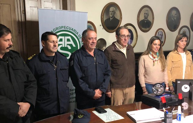 Se entregaron al Jefe de Policía de Salto, Carlos Ayuto, aparatos lumínicos y una tijera de esquilar eléctrica, lo que se suma a la anterior donación realizada tiempo atrás de un dron para ser utilizado en el control del delito en el interior del departamento.