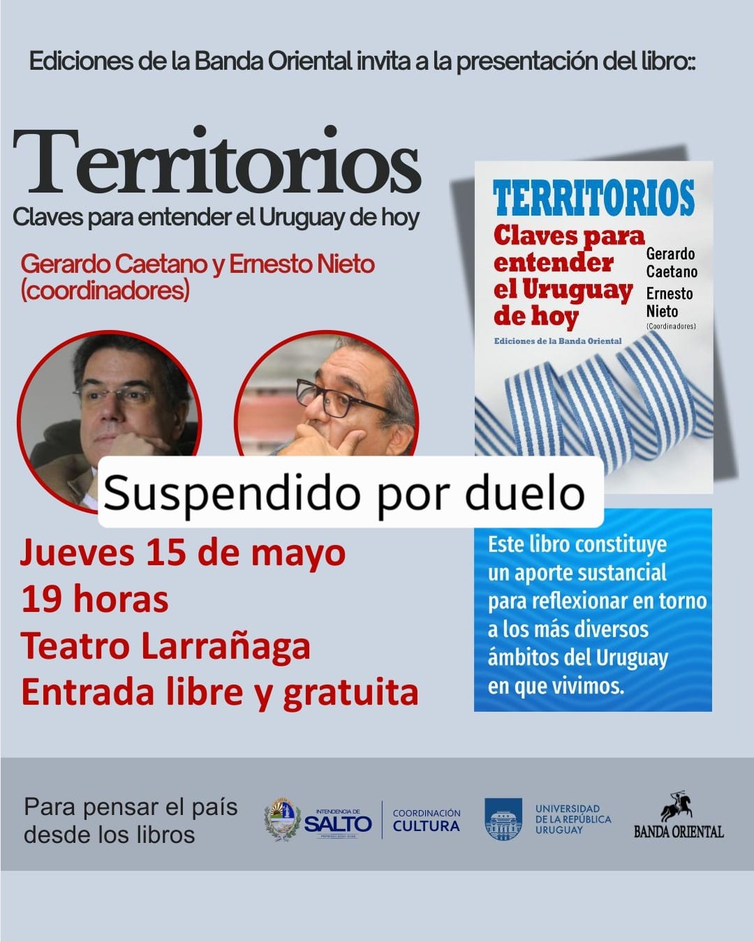 Presentación del Libro «TERRITORIOS, CLAVES PARA ENTENDER EL URUGUAY DE HOY» suspendido por duelo