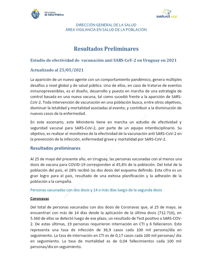 El presidente Lacalle Pou publicó las conclusiones primarias del estudio que mide el impacto de las vacunas contra el Covid-19 en Uruguay.