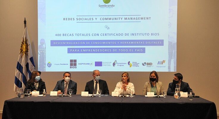 Lorena Ponce de León explicó que Sembrando Redes Sociales es una formación creada junto al patrocinio del Instituto BIOS, el proyecto Inspyrame UE, cofinanciado por la Unión Europea e implementado por la Cámara de Comercio y Servicios del Uruguay, la Eurocámara en Uruguay y el Banco Interamericano de Desarrollo, con el apoyo de ManpowerGroup.