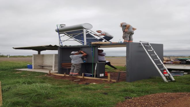 Son garitas que cuentan con paneles solares que generan energía para su iluminación y carga de dispositivos electrónicos, además de un calefactor para agua caliente, mejorando el servicio de quienes las utilicen.