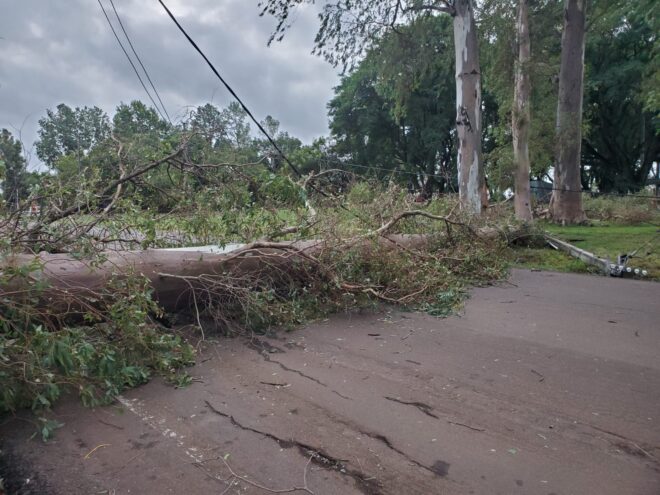 Se decretó alerta roja pasadas las 21 horas. Hubo ráfagas de vientos muy fuertes que, si bien duraron pocos minutos, causaron destrozos, con más de 20 voladuras de techos, caídas de columnas del alumbrado público, árboles y ramas, y varias zonas quedaron sin energía eléctrica.