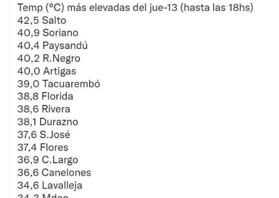 Habría que ver los datos mas cercanos, pero el récord de 1986, con 42.2ºC, ha sido superado, por lo tanto, tendríamos nuevo récord de temperatura máxima en Salto!!