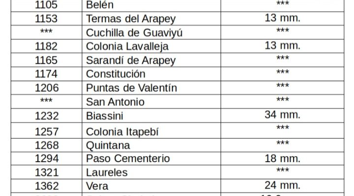 Estas lecturas corresponden al agua caída durante las 24 horas anteriores a la hora: 07:00 del día de la fecha.