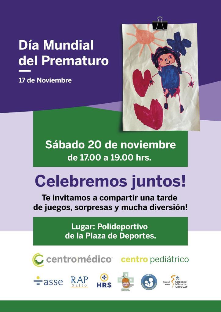 Conmemorando el día Mundial del Prematuro, el Regional Norte del Colegio Médico del Uruguay (CMU) apoya y participa de un evento a realizarse este sábado 20 de noviembre de 17 a 19 horas en la Plaza de Deportes, con entrada por 19 de Abril y Santos Errandonea.