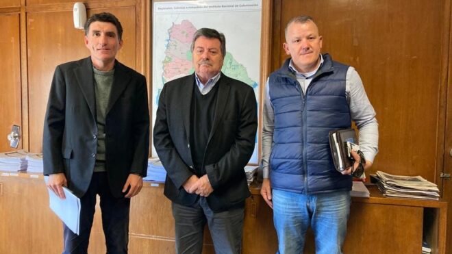 El director de Descentralización de la Intendencia de Salto, Álvaro Gómez, y el diputado por el departamento Álvaro Lima, se reunieron en Montevideo con el presidente del Instituto Nacional de Colonización, Dr. Julio Cardozo, con el objetivo de plantear gestiones respecto a la electrificación rural en Colonia Rubio y la solicitud de un predio para actividades agrícolas en Villa Constitución.