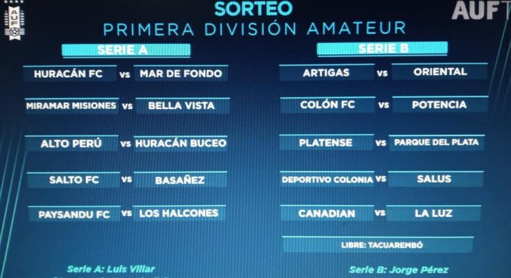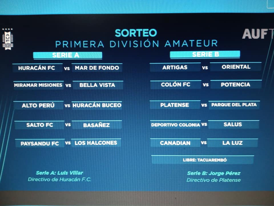 Se realizó en la AUF el sorteo de la Primera Divisional Amateur, el mismo determinó la integración de las dos series y los cruces en cada una de las fechas.