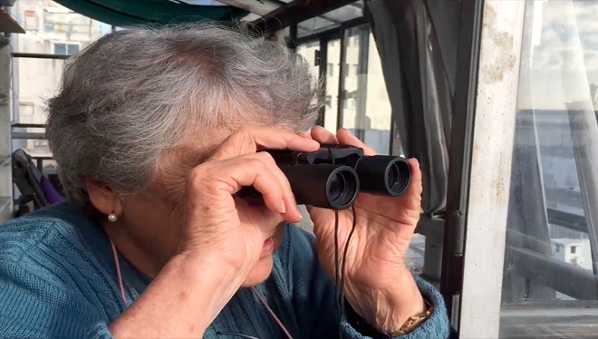 Nieves y Sergio son vecinos en apartamentos linderos en la Ciudad Vieja. El cineasta pensaba que sabía bastante acerca de su veterana vecina – en el momento de la filmación ella tenía 88 años – pero fue durante la pandemia que se conocieron realmente. Al principio los separaba un vidrio muy limpio, luego el contacto evolucionó a compartir ambientes casi siempre a dos metros de distancia, cenas, copas de vino, y algunos secretos que fueron forjando un vínculo real y profundo entre dos personas con mucho más en común que la diferencia de edades podría inferir.