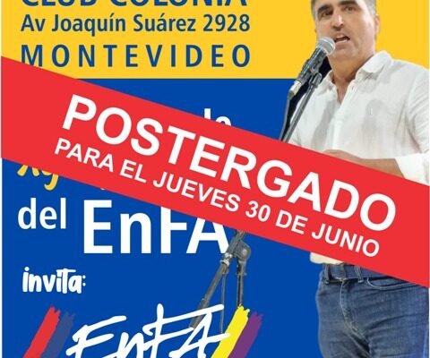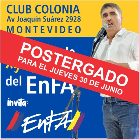 El acto que estaba previsto para este jueves 16 de junio quedó postergado para el 30 de junio a las 19 hs. en el mismo lugar, Club Colonia Avenida Joaquín Suárez 2928.