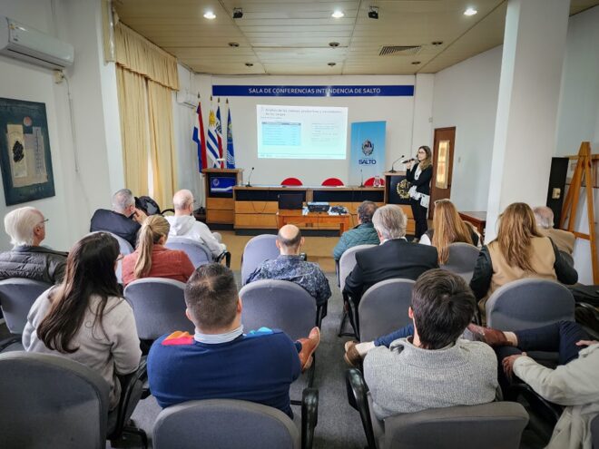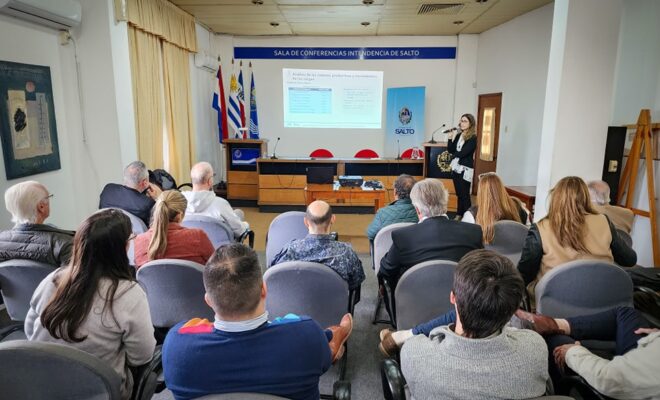 El pasado jueves en el Palacio Córdoba, se llevó a cabo la presentación del Estudio de demanda para el puerto de barcazas o terminal logística que se planea construir en Corralito, al sur de la ciudad de Salto. La presentación estuvo a cargo de la consultora A&C Economía y Finanzas y contó con la presencia de autoridades y técnicos de la Intendencia de Salto, el MGAP, Prefectura Nacional, CARU, entre otros.