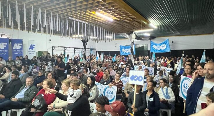 El sector Aire Fresco Salto del Partido Nacional, encabezado por el Dr. Carlos Albisu, proclamó a Álvaro Delgado como precandidato a la Presidencia de la República en su Plenario Departamental este viernes 5 de mayo en barrio Saladero.