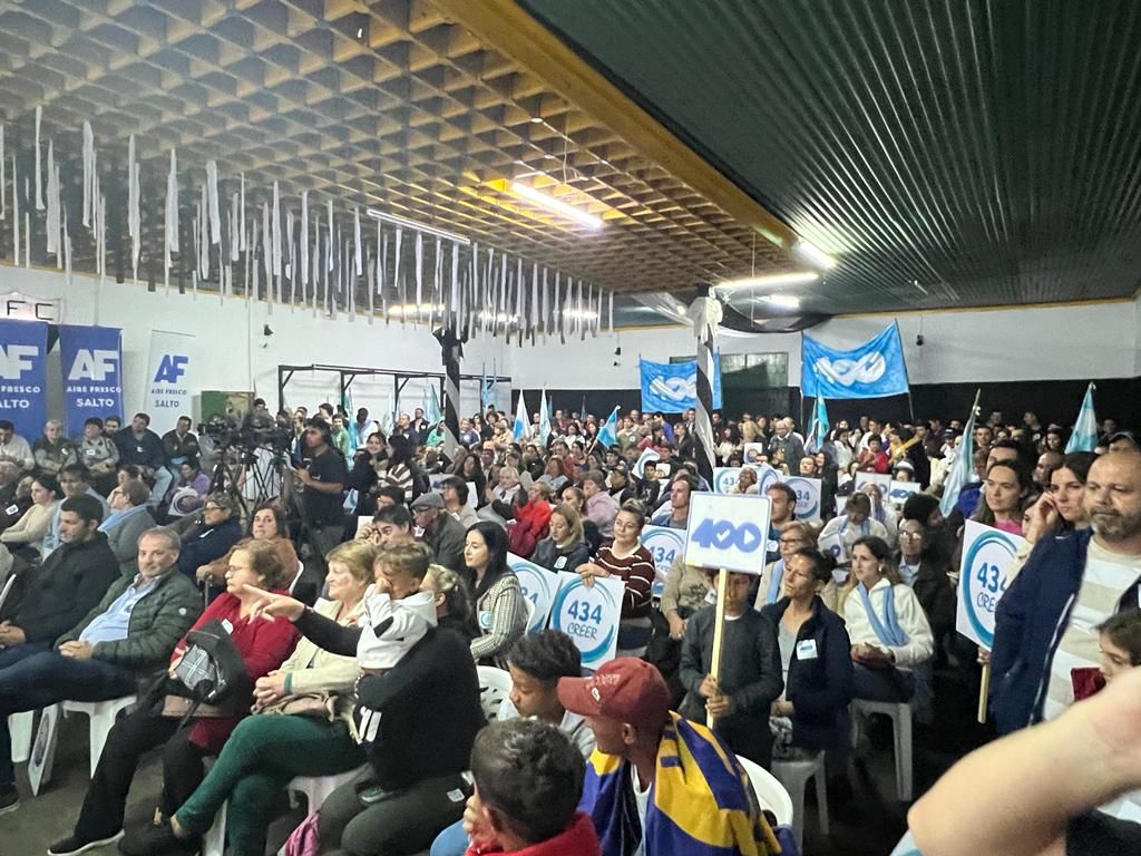 El sector Aire Fresco Salto del Partido Nacional, encabezado por el Dr. Carlos Albisu, proclamó a Álvaro Delgado como precandidato a la Presidencia de la República en su Plenario Departamental este viernes 5 de mayo en barrio Saladero.