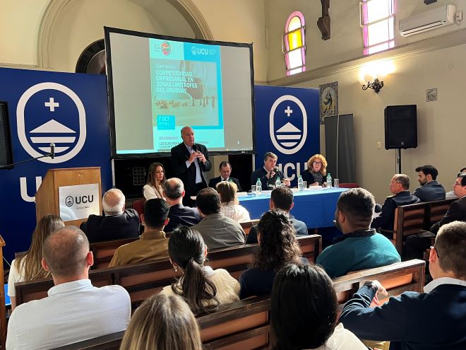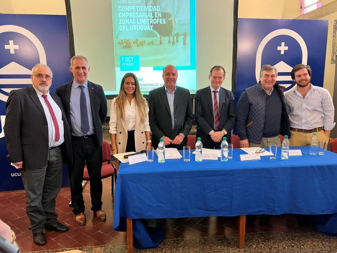 En la mañana de hoy, en el salón de actos de la Universidad Católica de Salto, se realizó un foro de Competitividad Empresarial en Zonas Fronterizas. El mismo contó con la presencia de legisladores nacionales, entre ellos el senador del Partido Colorado, Germán Coutinho. Asistieron estudiantes del centro de estudios y público en general, comerciantes y la presencia de la presidente del Centro Comercial e Industrial de Salto, Cra. Vera Faccin. Una vez más en su tierra natal el senador en acción dando cuenta de su gestión, la naturaleza y estado de situación de los proyectos de ley presentados.