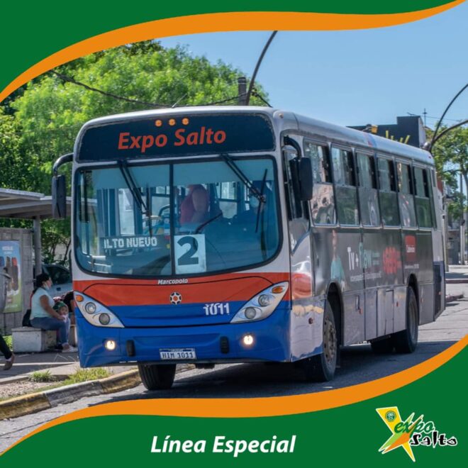 La División Ómnibus de la Intendencia de Salto informa los horarios del servicio especial con motivo de la realización de la Expo Salto 2023 en el predio de la Asociación Agropecuaria de Salto, que se llevará a cabo del jueves 28 de septiembre al domingo 1º de octubre. El costo del boleto será el mismo que el del servicio urbano: $25 (veinticinco pesos uruguayos) por viaje. Los abonos y pases libres no serán válidos para este servicio especial.