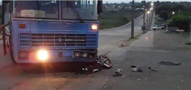 Próximo a la hora 19:10’ del día de ayer, un ómnibus de linea de la Comuna Local que circulaba por Avda. Patulé al Este, al tomar por calle Washington Beltrán al Norte, colisiona con una moto que circulaba por Avda. Patulé hacia el Oeste, resultando ambos ocupantes de este ultimo vehículo lesionados. Al lugar concurrió una Unidad de Emergencia Médica, donde el facultativo a cargo diagnostico para la acompañante menor de edad “politraumatismo grave con perdida de conocimiento” y para el conductor de la moto “politraumatismo con amnesia del episodio”, ambos trasladados al Hospital Salto. Se trabaja.–