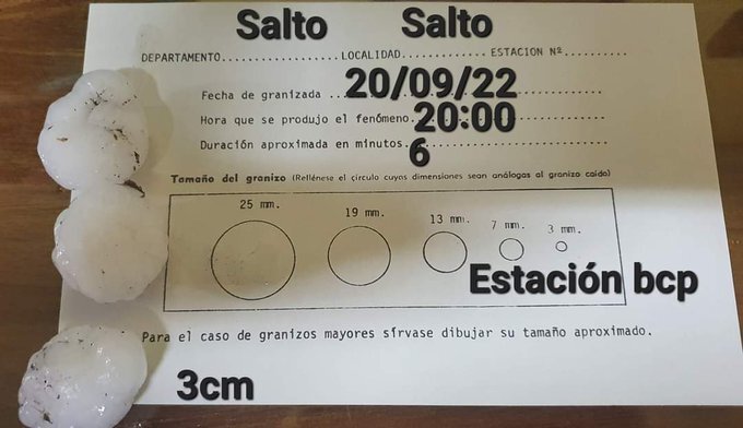 Las redes sociales se inundaron de fotos y videos de distintas zonas, que sorprendió y alarmo en alguna zona , ya que el tamaño del granizo alcanzo los 3 cmts .