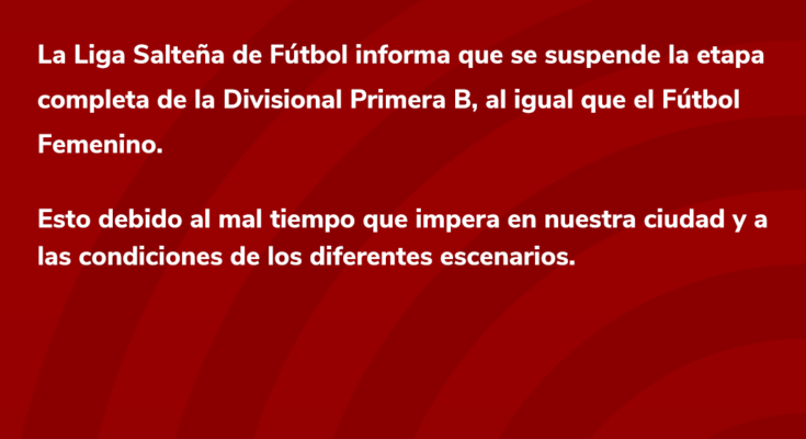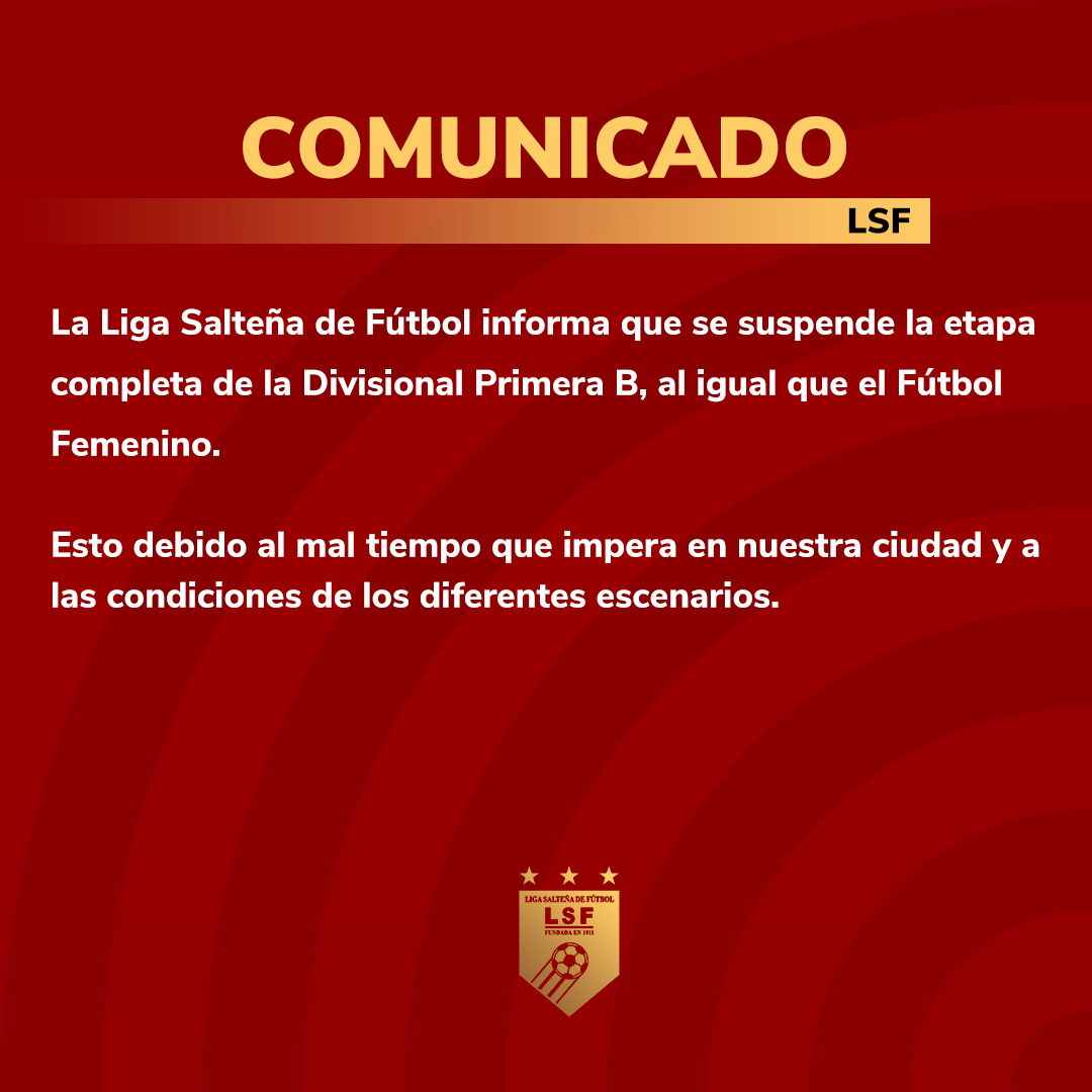 En tanto la actividad del fútbol femenino también siguió el camino de la suspensión debido al mal tiempo y al estado de las canchas. La actividad del fútbol Senior pactada para hoy sábado 16 de julio también fue suspendida.