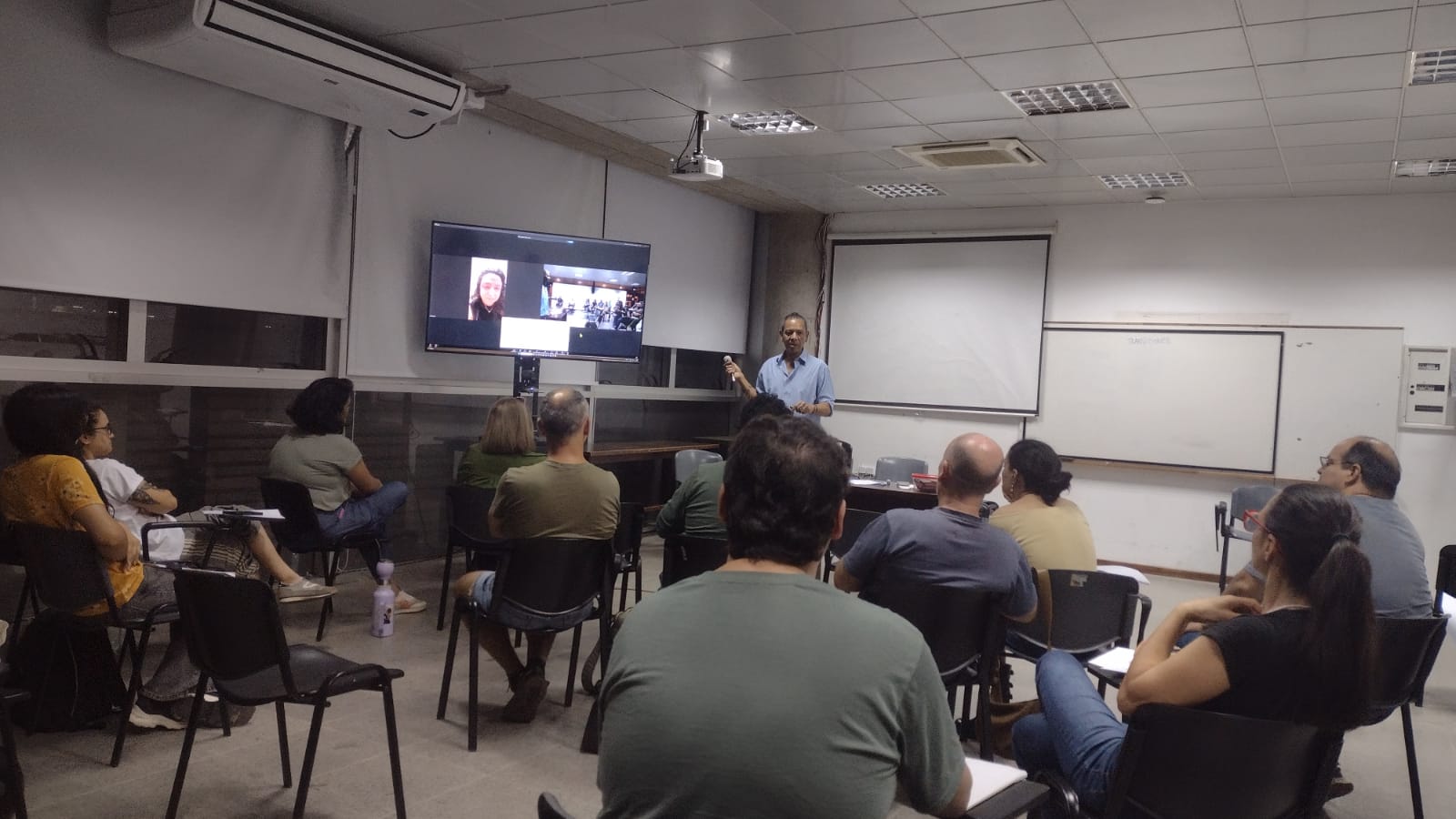 El Taller de Guión que brinda la Mesa Audiovisual Salto a cargo de Godoy, ha concitado un muy buen interés local. Una necesaria capacitación que surge de la demanda de productores, realizadores audiovisuales y personas interesadas. El Taller se imparte en encuentros semanales, con clases teóricas y talleres prácticos, donde también se dan espacios como en este caso de intercambiar con cineastas y artistas internacionales.