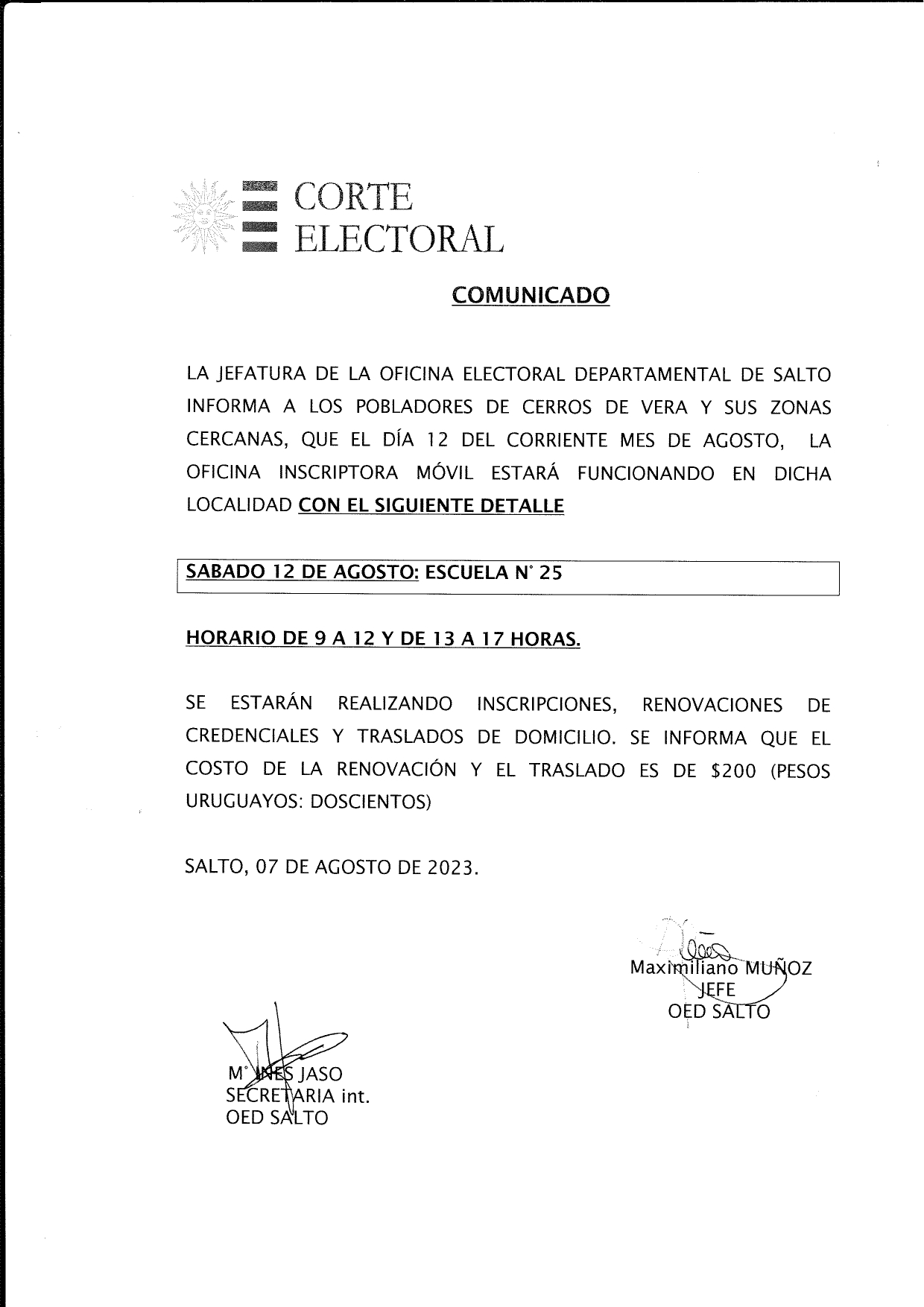 Trámites de credenciales se realizarán este sábado 12 de agosto en Cerros de Vera 7 agosto, 20237 agosto, 2023 - Dejar un comentario