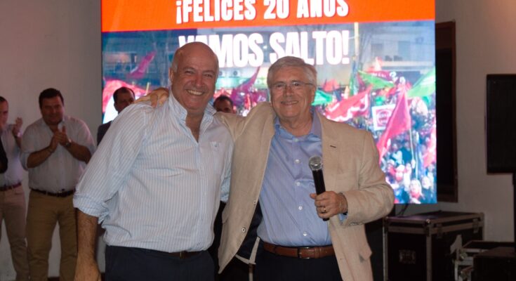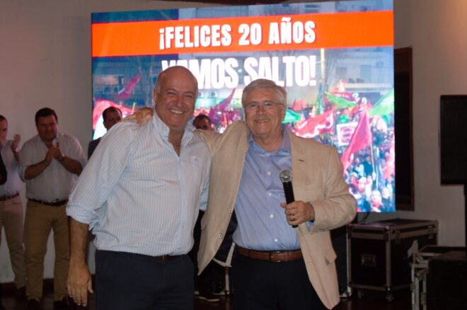 El sector liderado por el Senador Germán Coutinho oficializó su apoyo a la precandidatura presidencial por el Partido Colorado del actual Ministro Tabaré Viera. Vamos Salto celebró sus 20 años con una emotiva fiesta donde reunió a dirigentes fundadores y actuales, de la ciudad y del interior, para recordar las consagraciones de estas dos décadas y a su vez recibir a Tabaré Viera para anunciar formalmente su apoyo.